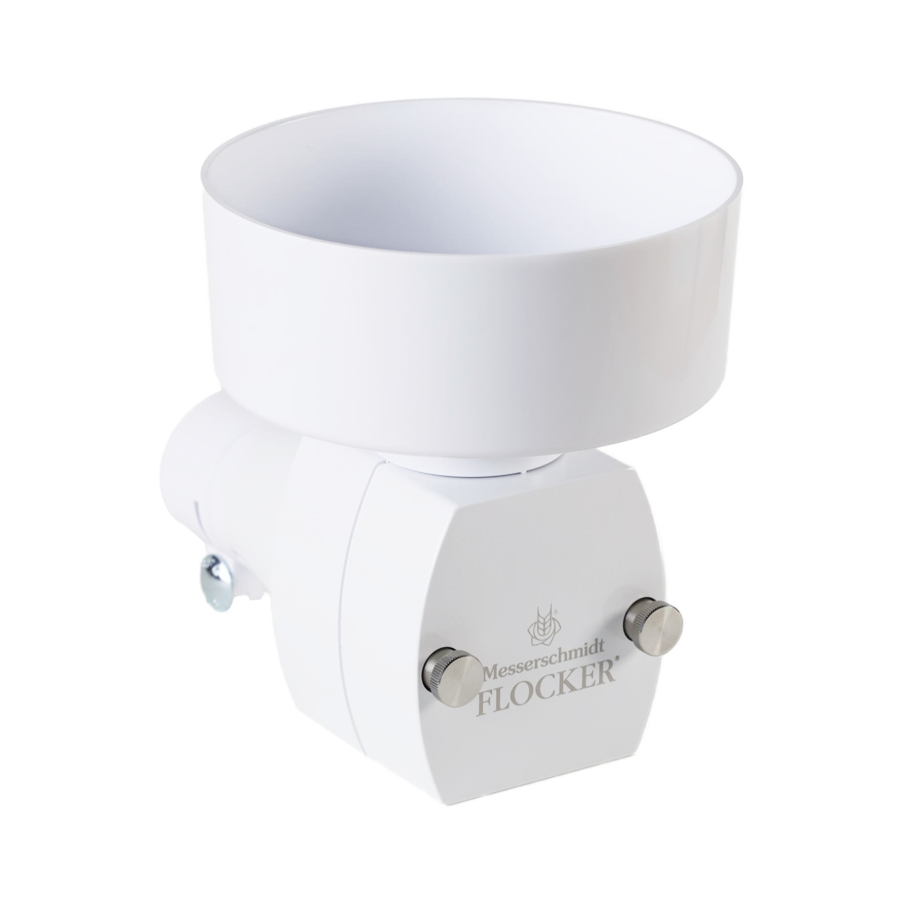 Der Vorsatz Flockenquetsche, Getreideflocker oder Flocker ist mit einer Rändelwalze aus Edelstahl ausgestattet. Damit können verschieden Getreide, Kornmischungen und Ölsaaten (z.B. Sesam und Leinsamen), sowie Gewürze rasch und gesund verarbeitet werden. Ein voller Genuss, denn die natürlichen Aromen und wertvollen Inhaltsstoffe bleiben bestens erhalten. Mit wenig Aufwand können die Mahlzeiten mit wertvollen Vitaminen, Mineralien und Ballaststoffen ergänzt werden. Wie bei Messerschmidt Produkten üblich, kann der Flocker ohne großen Aufwand verwendet und gereinigt werden. Er ist ein wunderbarer Küchenhelfer für den Haushaltsgebrauch. Futterhafer kann mit ihr allerdings nicht verarbeitet werden.