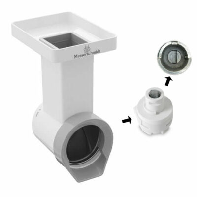 Mit dem mitgelieferten Adapter können Sie auch die anderen Vorsätze von Messerschmidt, wie Flockenquetsche und Universalwolf, an Ihre Küchenmaschine anschließen. Sollten Sie Ihren Küchenmaschinentyp einmal wechseln, können Sie die Messerschmidt Vorsätze meist weiter nutzen, da wir für die meisten gängigen Küchenmaschinen einen passenden Adapter führen. Adapter-Übersicht